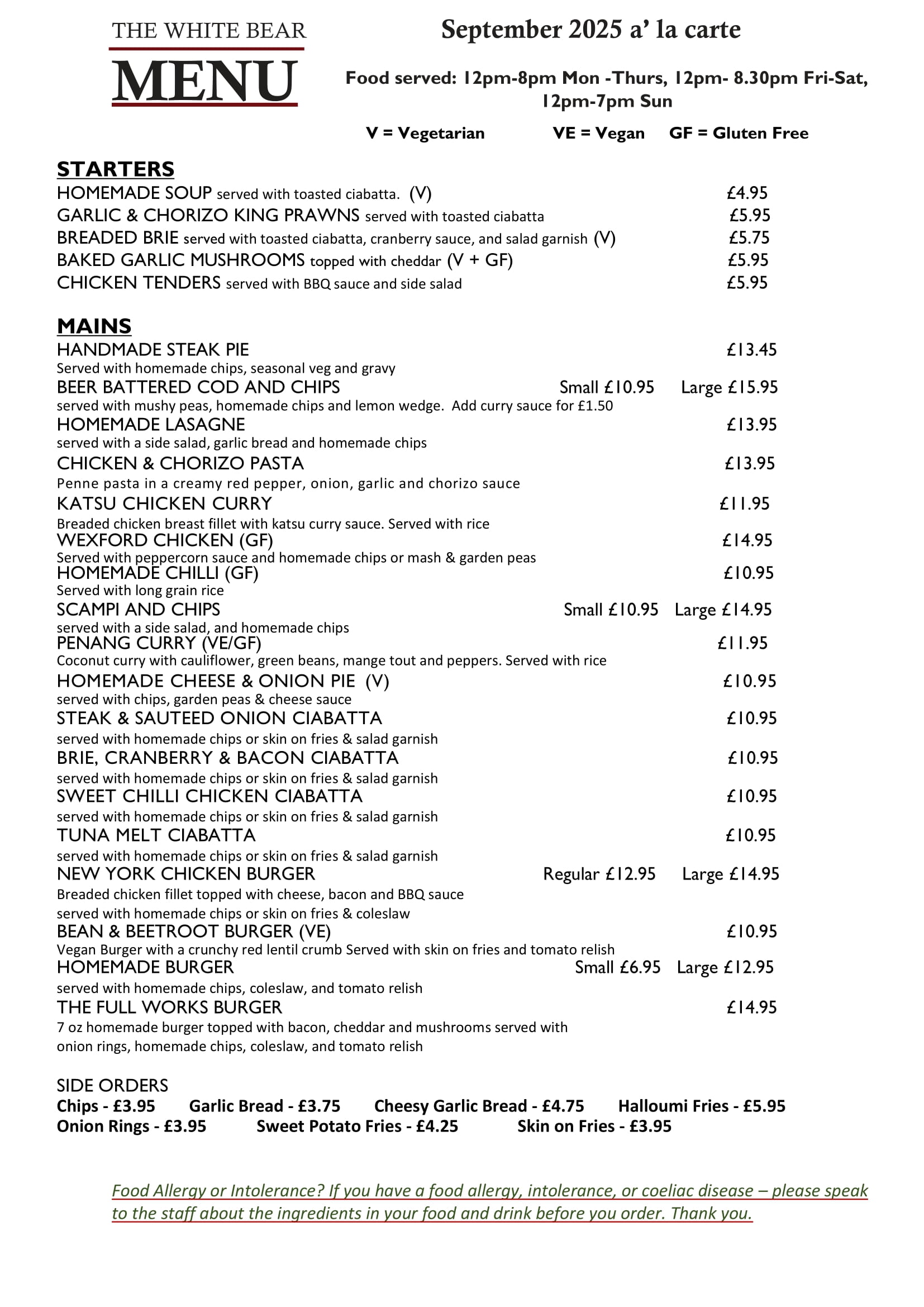 Our first time back to the White Bear since lockdown. Food is still spot on and tonight we had the best service from a lovely bubbly waitress called Coral. Social distancing all perfect couldn’t have felt safer… More
